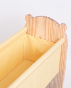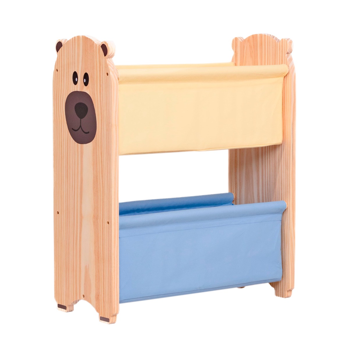 O organizador possui 2 Bolsos feitos de lona de tecido de alta duração,com toque macio e delicado. Mas que suporta o peso dos livros brinquedos e jogos.